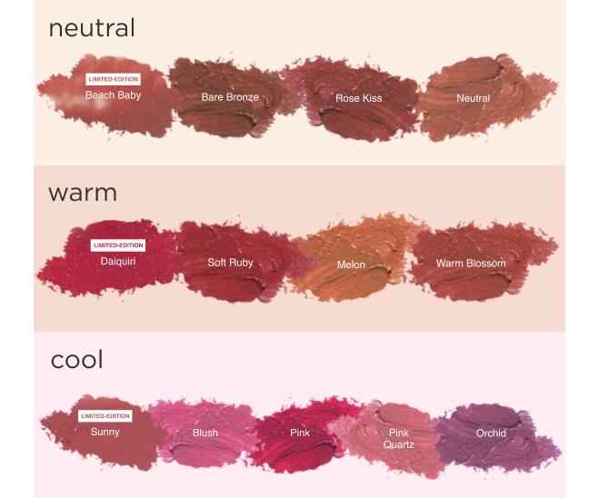 Enjoy creamy lip color with skincare benefits and get healthy happy lips all year round! Treat your lips to a nourishing, buttery boost of shiny buildable color all year long -- powered by natural Elderberry, Shea Butter and Superfruit oils. Fresh fruit smoothie scent. Cream or shimmer finishes.